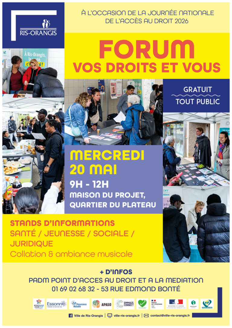 Nous vous invitons à cette après-midi d’information autour du thème "FORUM VOS DROITS ET VOUS" qui aura pour vocation de promouvoir les permanences du PADM (Point d'Accès au Droit et à la médiation)