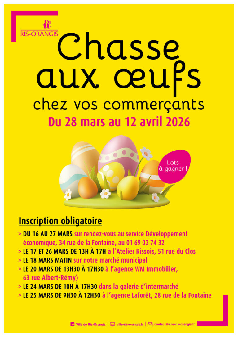 À partir de 15 œufs trouvés, tentez de remporter l’un des 3 lots en jeu, lors du tirage au sort prévu le 15 avril à 18h30, en salle des Mariages de l’hôtel de ville.