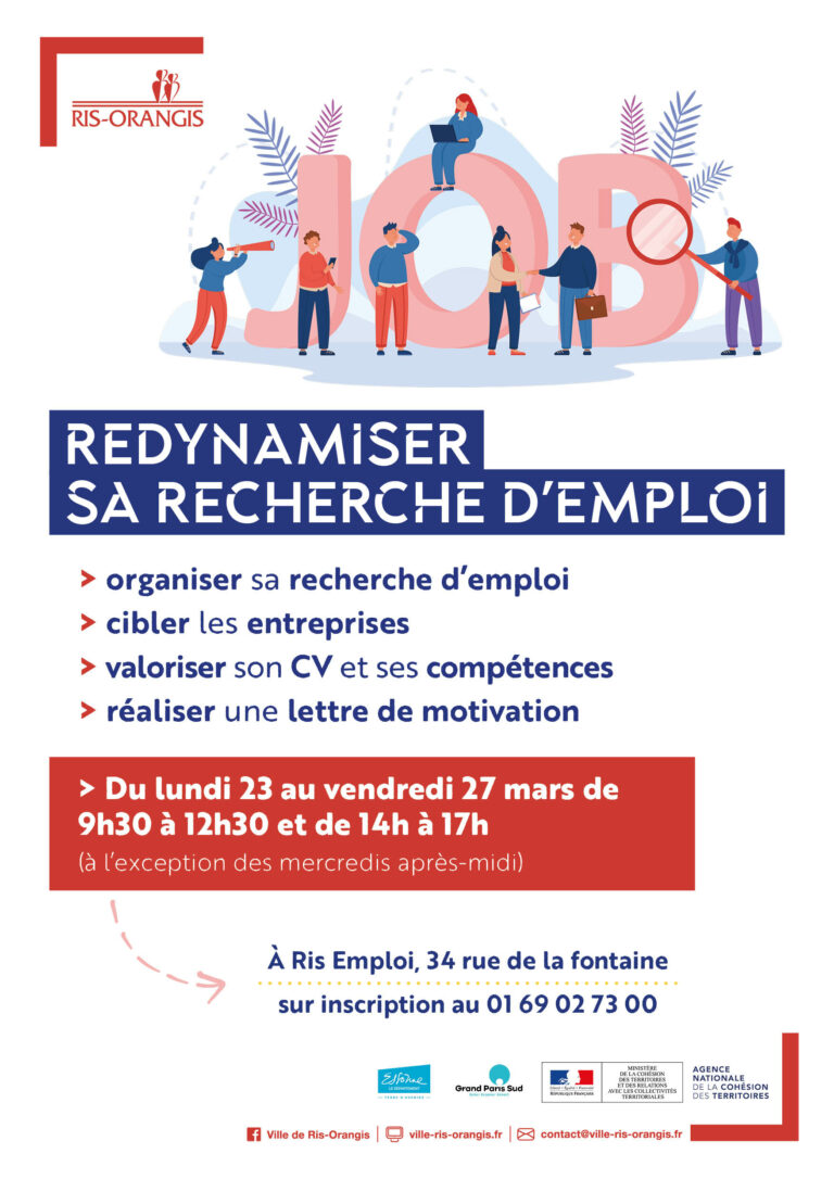 Ris Emploi, un service municipal, vous propose un atelier « redynamiser sa recherche d'emploi » pour vous accompagner vers l’insertion professionnelle. Son objectif est de :