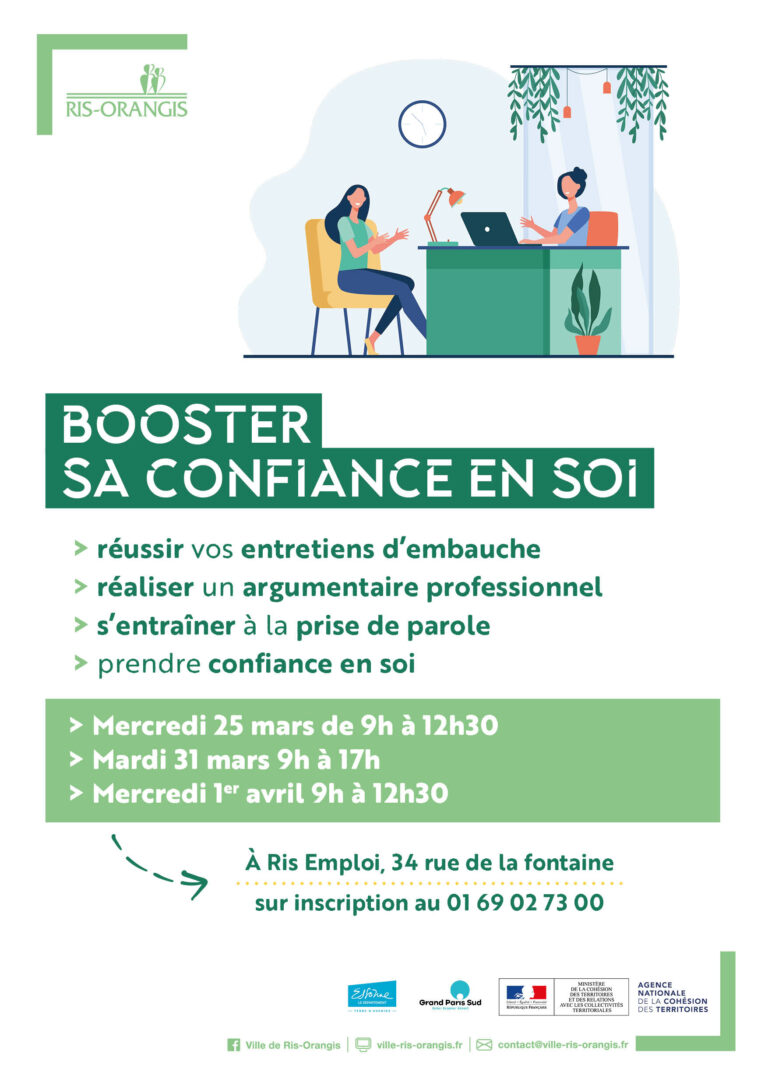 Ris Emploi, un service municipal, vous propose un atelier « Booster sa confiance en soi » pour vous accompagner vers l’insertion professionnelle. Son objectif est de :