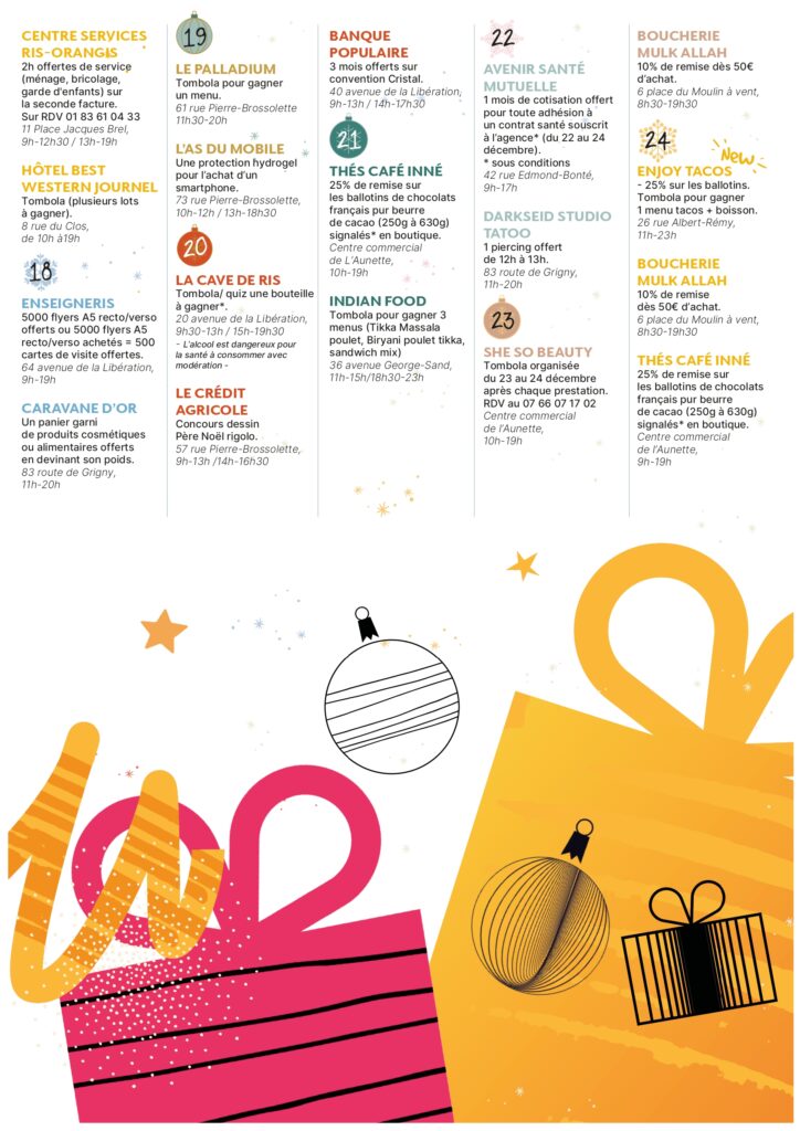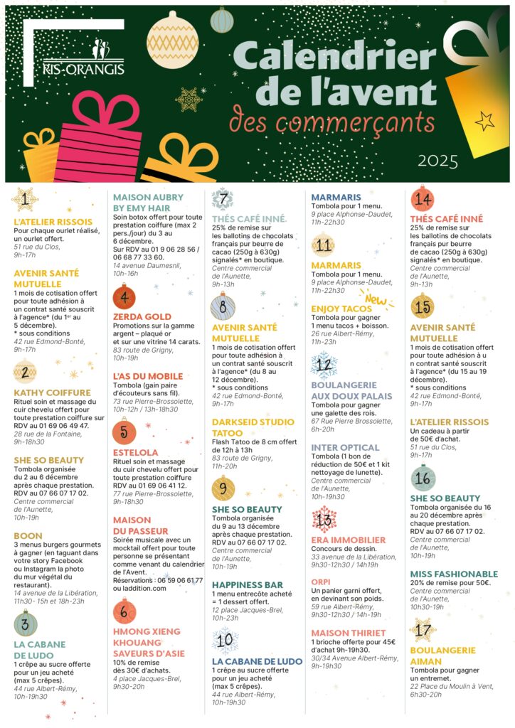 Pour la quatrième année consécutive, nos commerçants rissois vous proposent leur Calendrier de l’Avent, véritable compte à rebours jusqu’à Noël ! Tenez-vous prêts à profiter des avantages qu’ils vous réservent. Réalisé en partenariat avec notre Municipalité, ce calendrier réunit 32 commerçants qui jouent