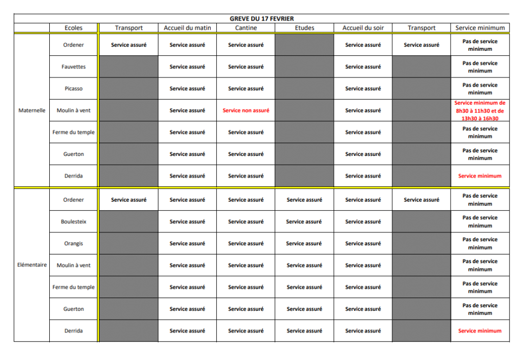 Le Mardi 17 Février, certains services ne seront pas assurés.