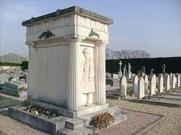 • Henri Robida : sa tombe en marbre noir représente deux ailes encadrant une mappemonde, avec le trajet Paris-Hanoï-Paris, qu’il effectua en 1932.