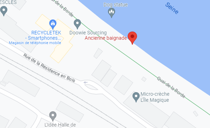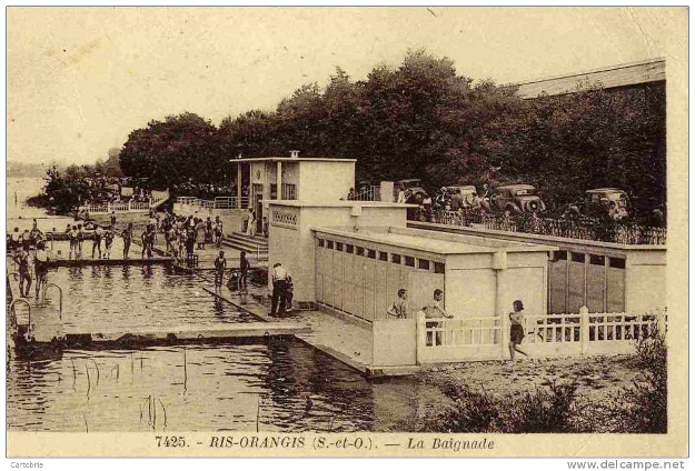La 1ère baignade est construite en 1930 à l’endroit où les rissois avaient pris l’habitude de se baigner dans la Seine. Elle est constituée d’un ponton en béton au-dessus de l’eau, d’un plongeoir à 2 niveaux et de cabines de bois pour l’habillage des baigneurs.